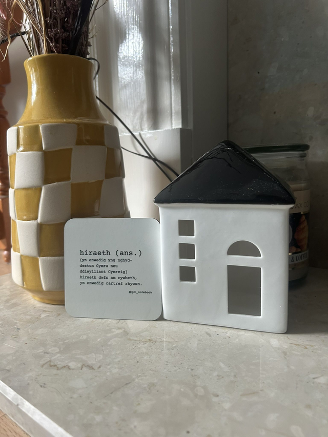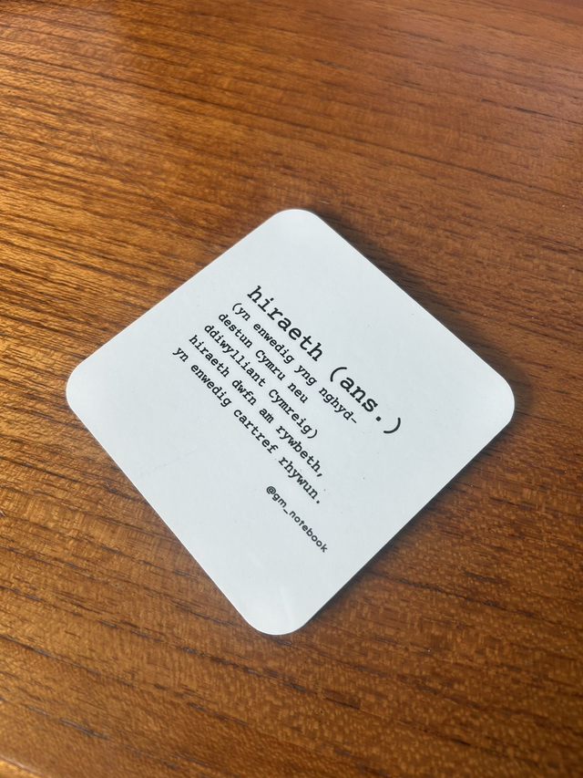 Bring a touch of Welsh soul to your home with our Hiraeth Dictionary Coaster. Designed in a clean, dictionary-style layout, this coaster defines hiraeth – a beautiful Welsh word describing a deep longing, nostalgia, and sense of home that has no true English equivalent. Perfect as a thoughtful gift or a daily reminder of heritage, belonging, and cherished memories.
